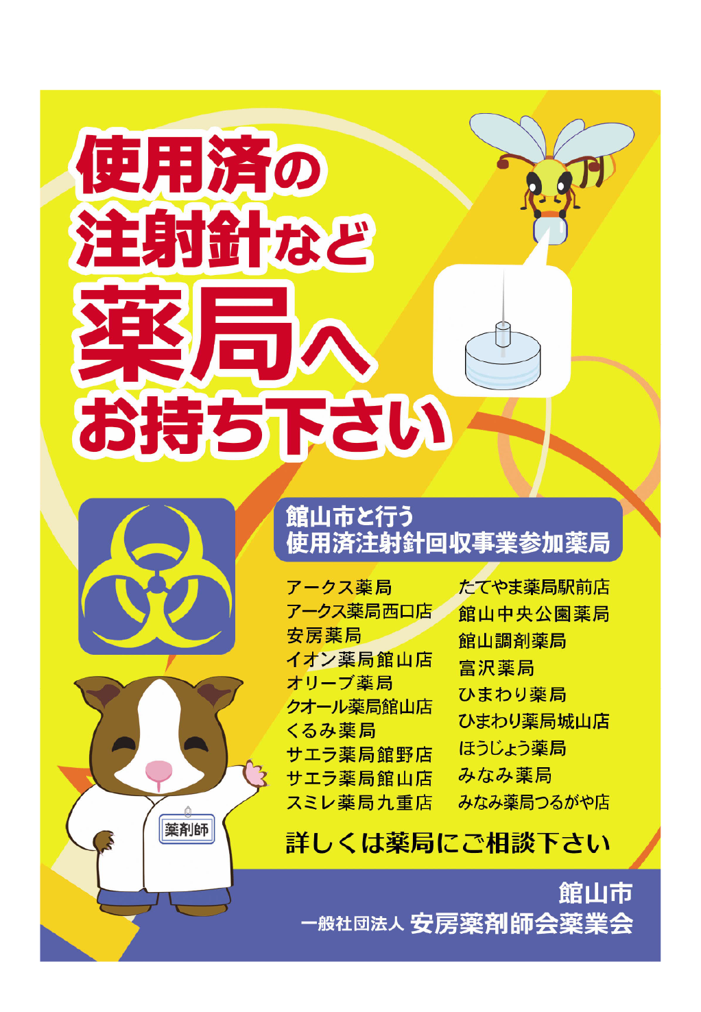 安房薬剤師会薬業会より、使用済注射針の回収についての周知依頼がありました。
